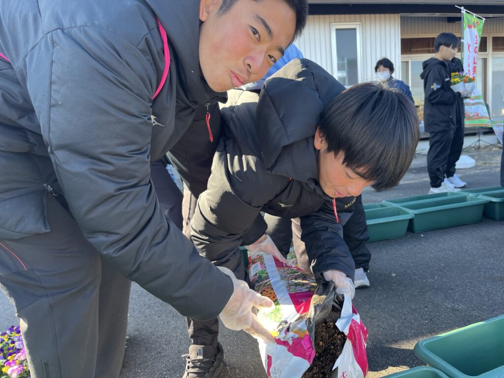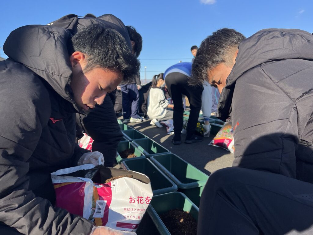 一つ目は「花いっぱい活動」です!土を入れ、根をほぐし、花を植えるところまで一人一人が協力しながら作業をし、彩り豊かな花が花壇いっぱいに植わりました!