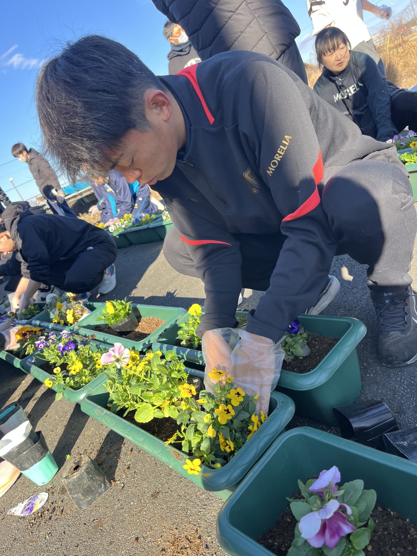 一つ目は「花いっぱい活動」です!土を入れ、根をほぐし、花を植えるところまで一人一人が協力しながら作業をし、彩り豊かな花が花壇いっぱいに植わりました!